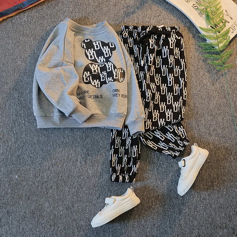Ins Boys and Girls Korean Version of Autumn New Style Japanese Simple Waffle Hooded Cardigan Jacket Pants Casual Suit