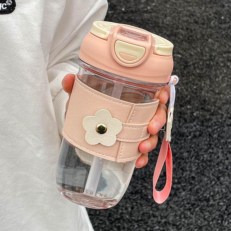 1 шт. Пластиковая кружка, Прямая питьевая соломинка Два способа использования кружки, Офисная кофейная чашка, На прогулку с чашкой 500ml розовый