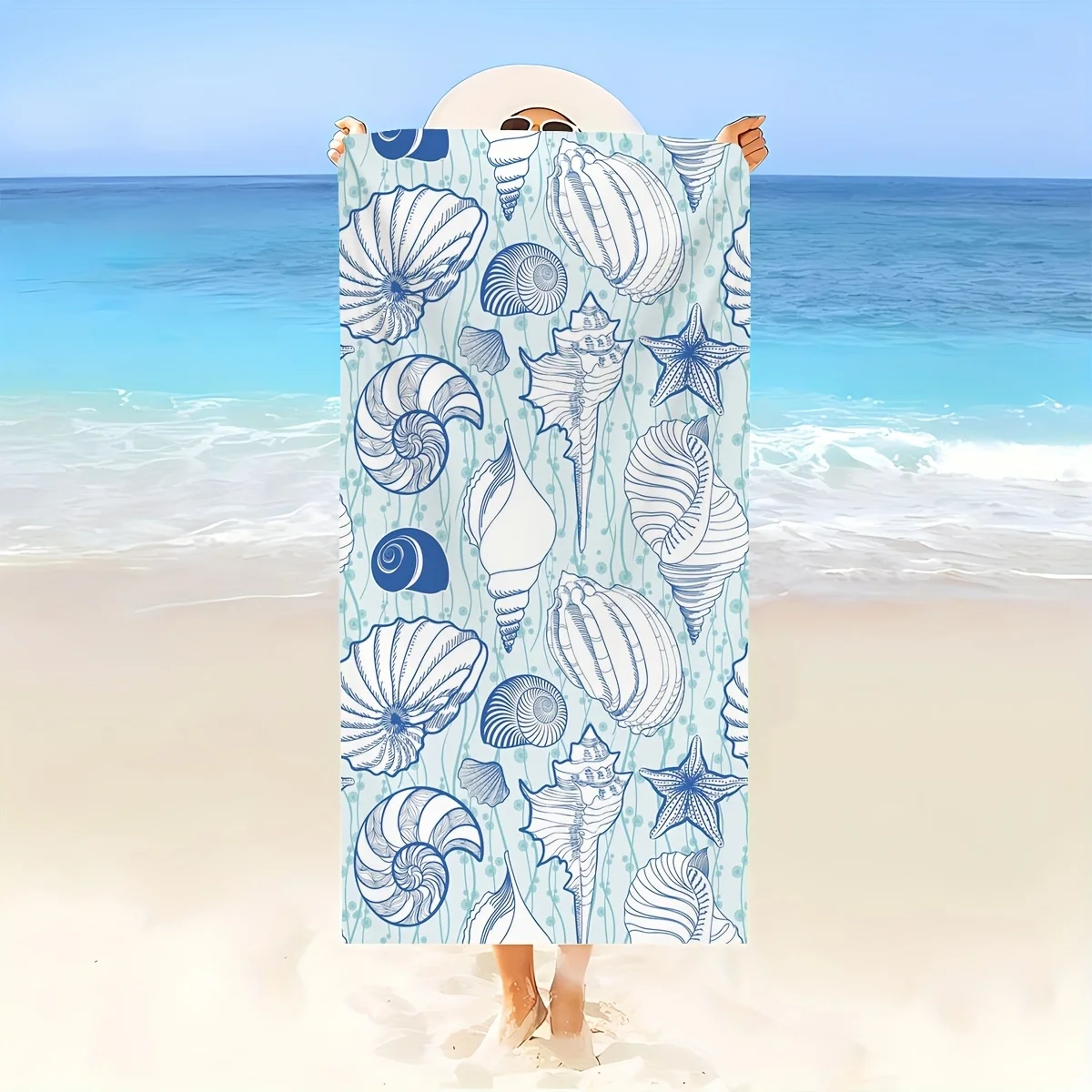 1 шт. Пляжное полотенце с ярким рисунком ракушки, полиэфирная ткань, можно стирать в машине — идеально подходит для путешествий, йоги, кемпинга, плавания