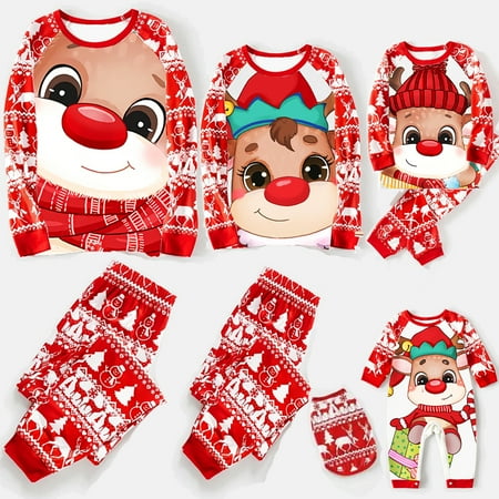 Zukuco Christmas Pajamas for Family Set Elk Tree Striped Reindeer Santa PJs Women Men Couples Kids Clothes Sleepwear