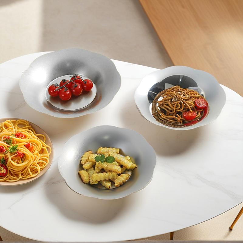 1 шт. Поднос для сервировки Домашняя кухонная утварь Двойные серебристые корейские подносы для фруктов Уличная посуда Кухня 304 нержавеющая сталь 20cm