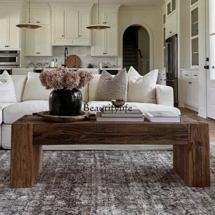 ls 42 *Wabi Sandy Wind Solid Wood Coffee Table Household Small Apartment Designer Homestay Long Wood Coffee Table