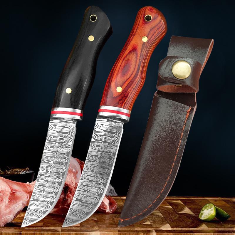 1 шт. Прямой нож с ручкой из цельного дерева, многофункциональный нож, высокопрочный нож для барбекю, бытовой острый нож для фруктов with cover чёрный