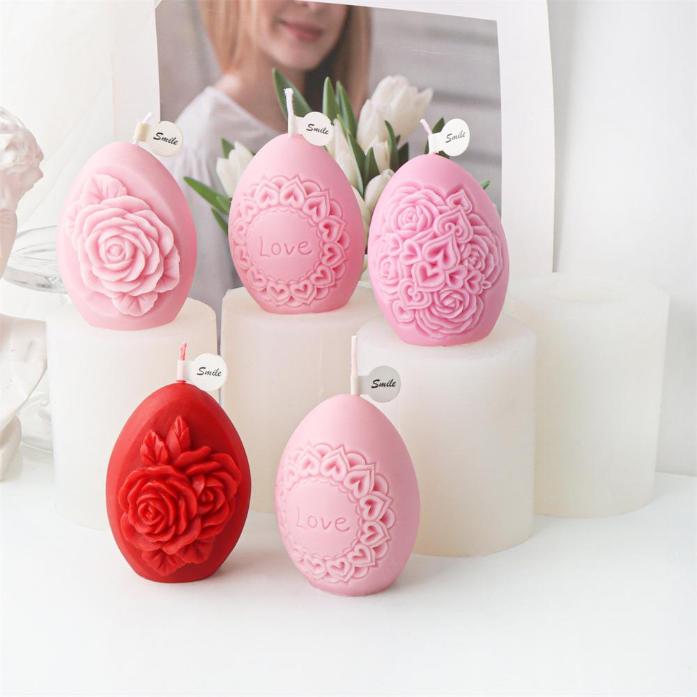 1 шт. Рельефная роза, яйцо, силиконовая форма для свечей, 3D-помадка, мыло ручной работы из смолы, ароматизатор, пасхальный подарок, яйцо, резная роза