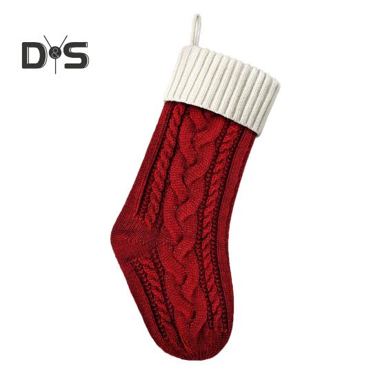 1 шт. Рождественский носок для подвешивания, вязаный чулок для хранения подарков с конфетами для создания праздничной атмосферы, контрастный цвет, украшение для домашнего окна, подарочный носок для подарков белый/красный