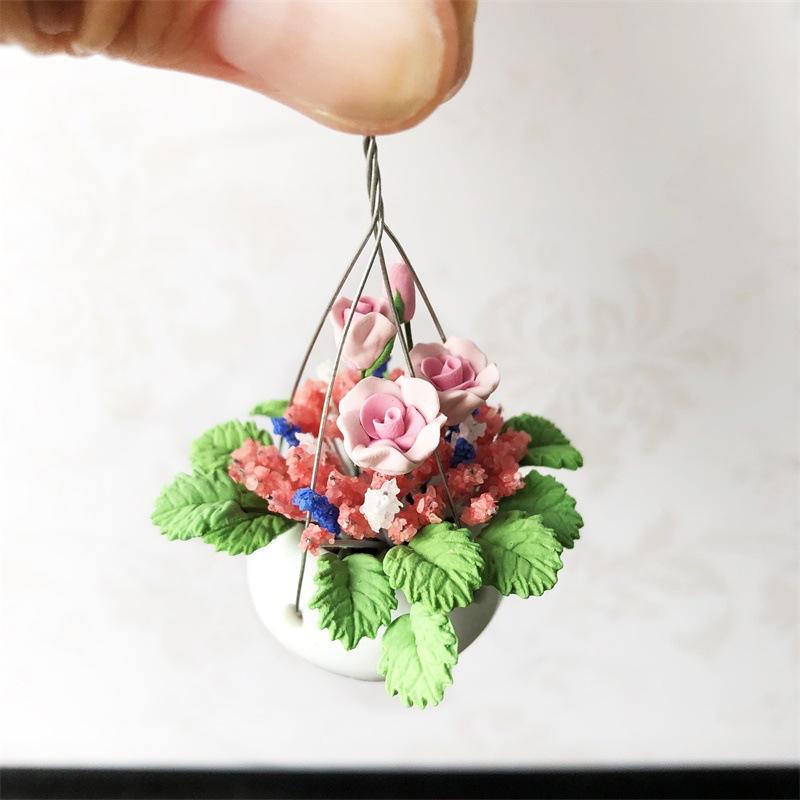 1 шт. Сад Балкон Цветочная композиция Керамический горшок Можно повесить Розовый куст розы Поделки Миниатюрные украшения для сцены Комнатные растения Садовая зелень 1pcs
