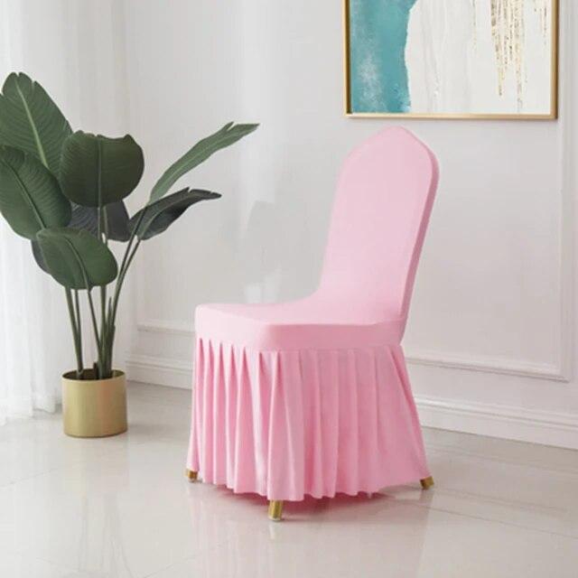 1/шт. Свадебные чехлы на стулья из спандекса для банкета, юбка, стильное украшение, лайкра, универсальные плиссированные, для отеля, вечеринки, дня рождения, с рюшами, толстые розовый