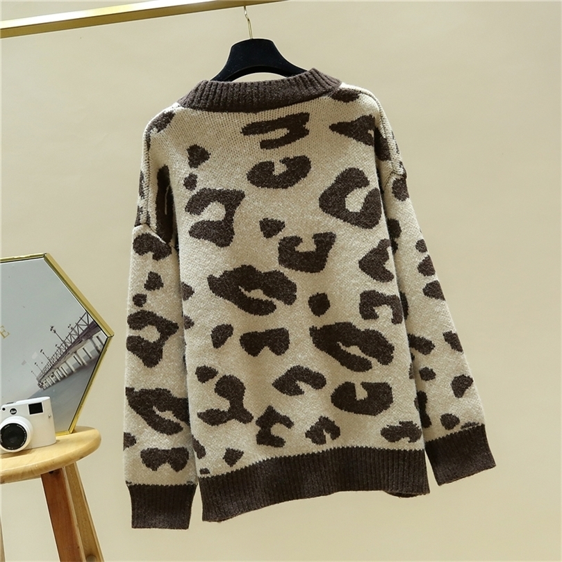 Women Fashion Long sleeve Sweater and Cardigans Open Stitch Leopard Casual Cardigans Oversized Knit Jacket Out Coat 201204, Brown