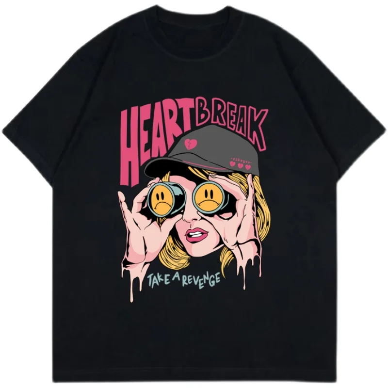 Черная футболка больших размеров с короткими рукавами: персонаж мультфильма «HEARTSICK» с рисунком капель краски