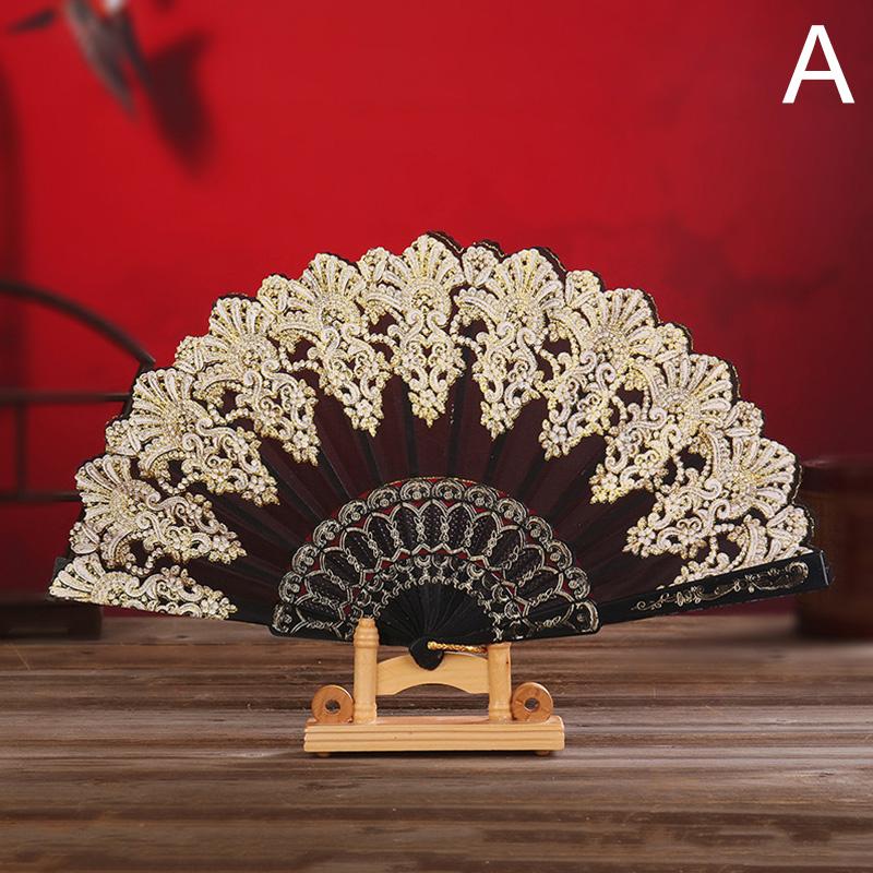 1 шт. Складные веера Танец Вечеринка Шоу Китайский стиль Ткань Принт узор Реквизит для выступления Искусство Ремесло Подарок чёрный