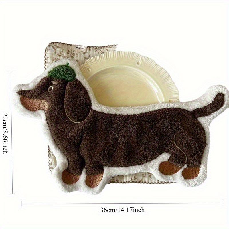 1 шт. Современное вышитое полотенце для рук с таксой, супервпитывающее полотенце для ванны из кораллового флиса с милым мультяшным лицом собаки и дизайном зеленой шляпы