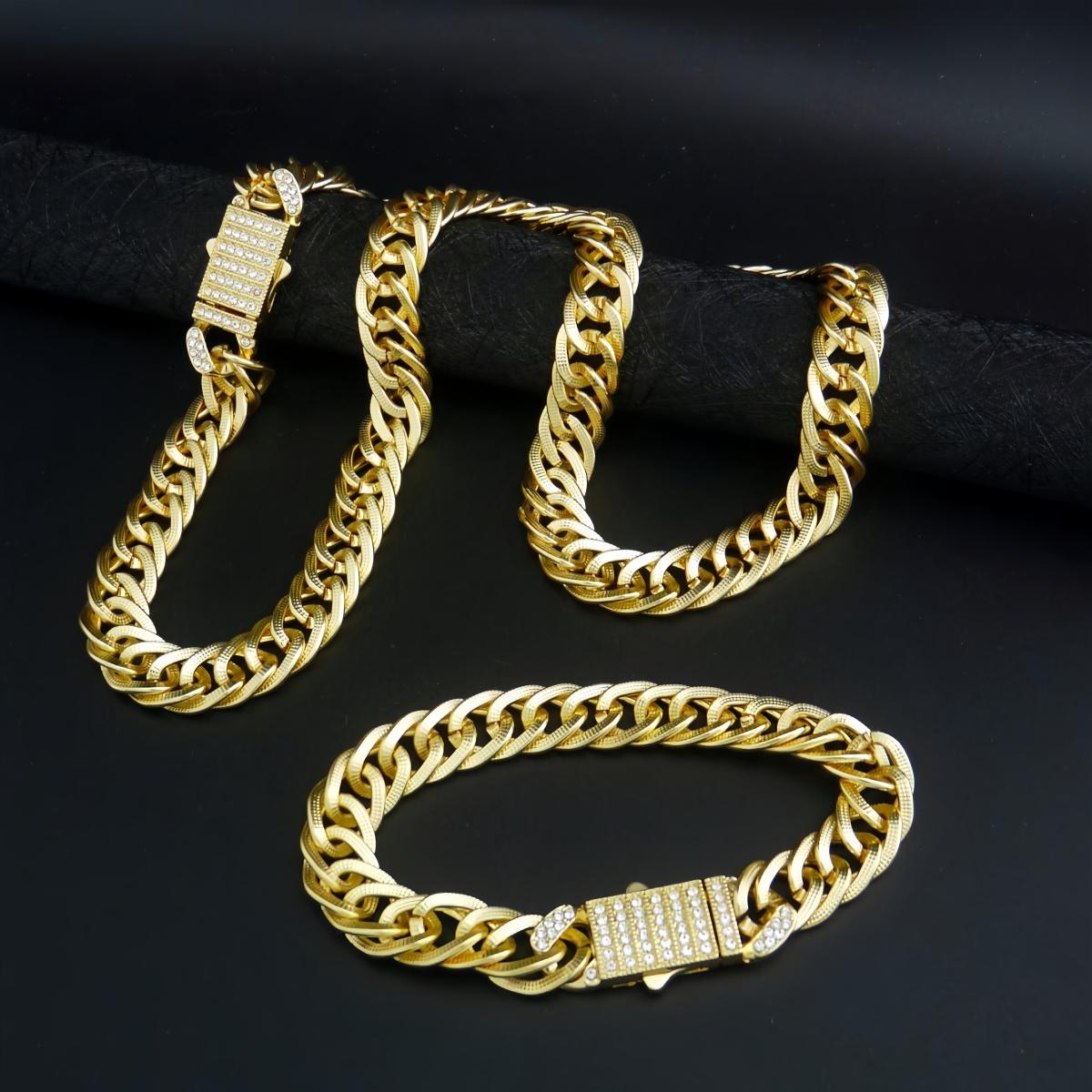 1 шт. Хип-хоп панк стиль 14K позолоченная кубинская цепь стиль массивная цепь браслет ожерелье набор 50cm