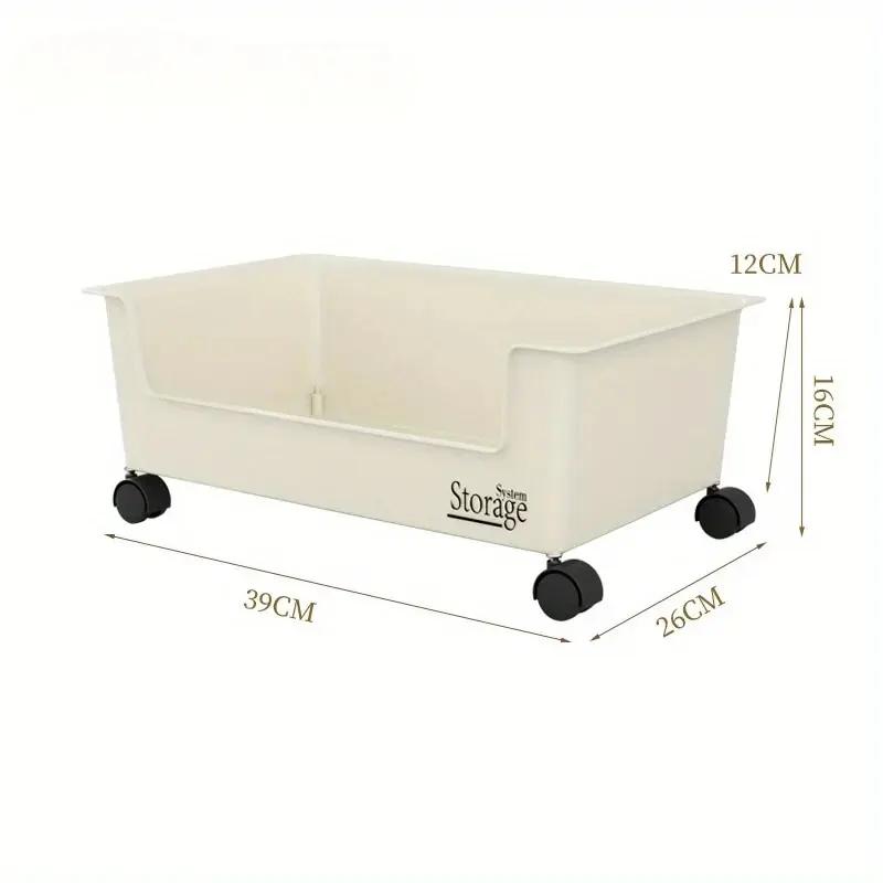 1 шт. Ящик для хранения с роликом Крышка для кастрюли Пластиковая полка Кухонная утварь Белый ящик для хранения Книжная полка Полка для хранения, Эстетический декор комнаты