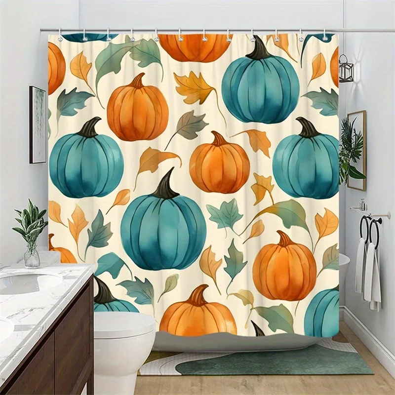 1 шт. акварельная бирюзовая и оранжевая тыквенная занавеска для душа — полиэфирная ткань, можно стирать в машине, подходит для декора ванной комнаты