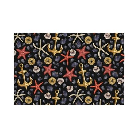 Table Placemats Set of 6 - golden anchors starfishes shells rope 12x18 In Faux Linen Double Heat Resistant Place Mats Cloth Indoor/Outdoor Placemats Washable Table Mats for Dining Kitchen Party