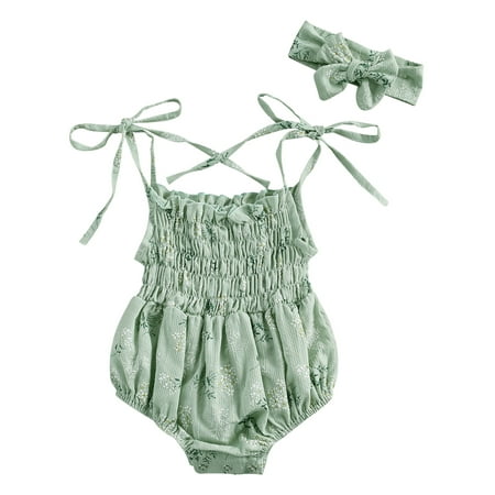 Aunavey Newborn Baby Girls Strap Sleeveless Romper Floral Sling Bodysuit Jumpsuit with Headband