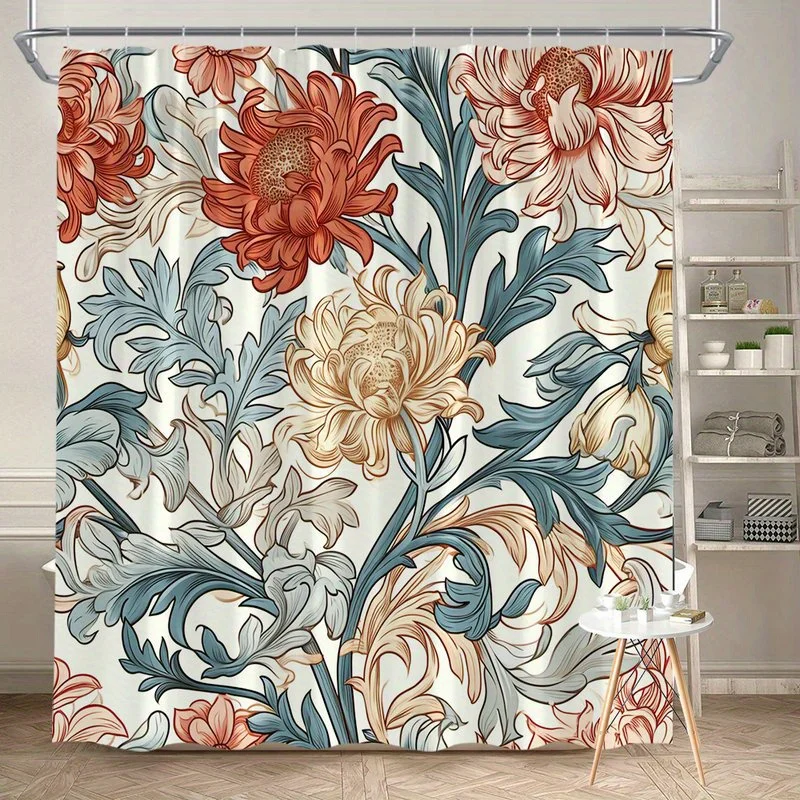 1 шт. винтажная занавеска для душа с рисунком хризантемы, полиэфирная ткань, можно стирать в машине, подходит для украшения ванной комнаты