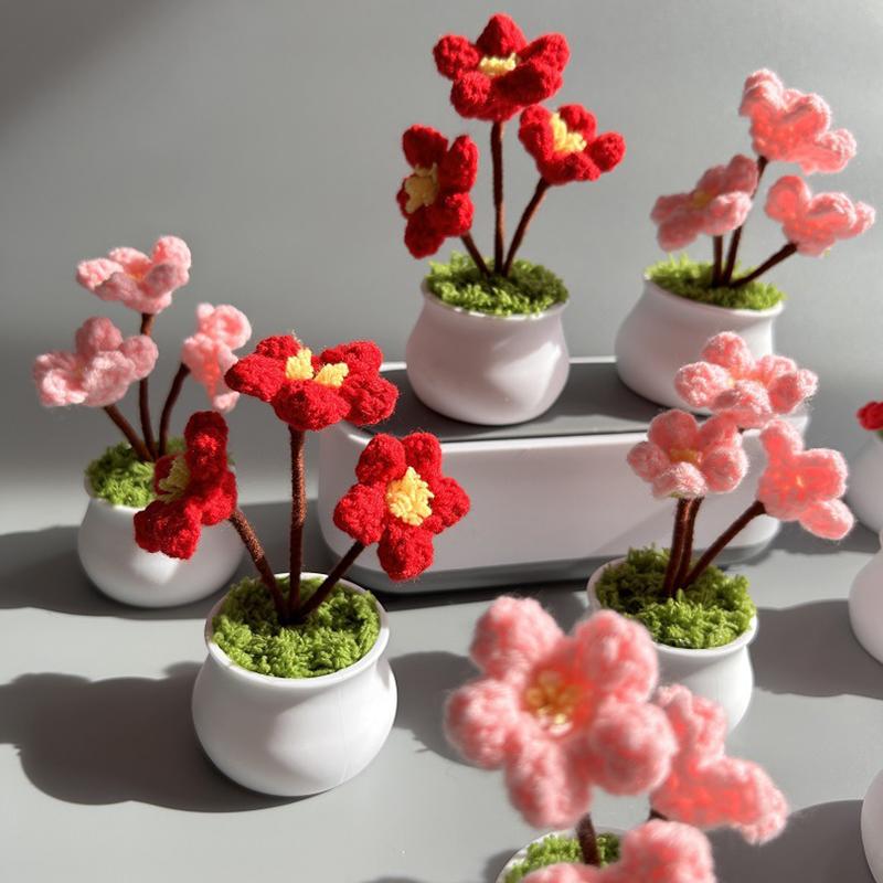 1 шт. вязаные крючком цветы яркие цветные украшения для стола сувениры для вечеринок имитация горшечного домашнего декора цветущая слива ручная работа плетеные