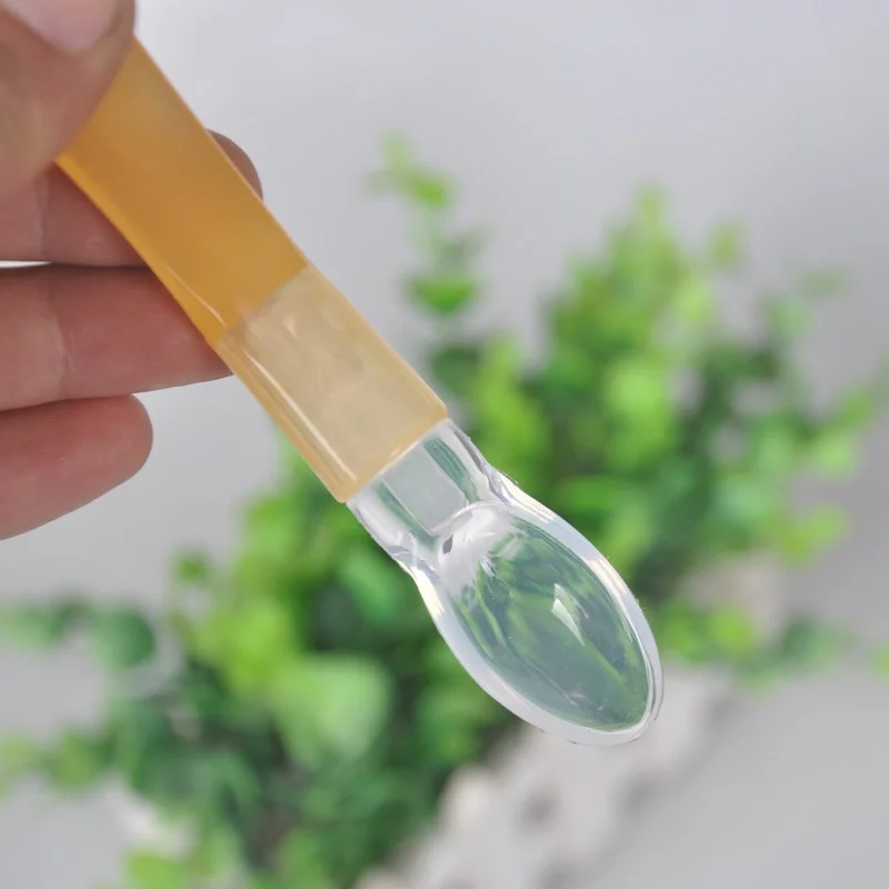 1 шт. детская ложка для кормления с контейнером для хранения, милая столовая посуда из пищевого силикона, нескользящая ложка для обучения ре...