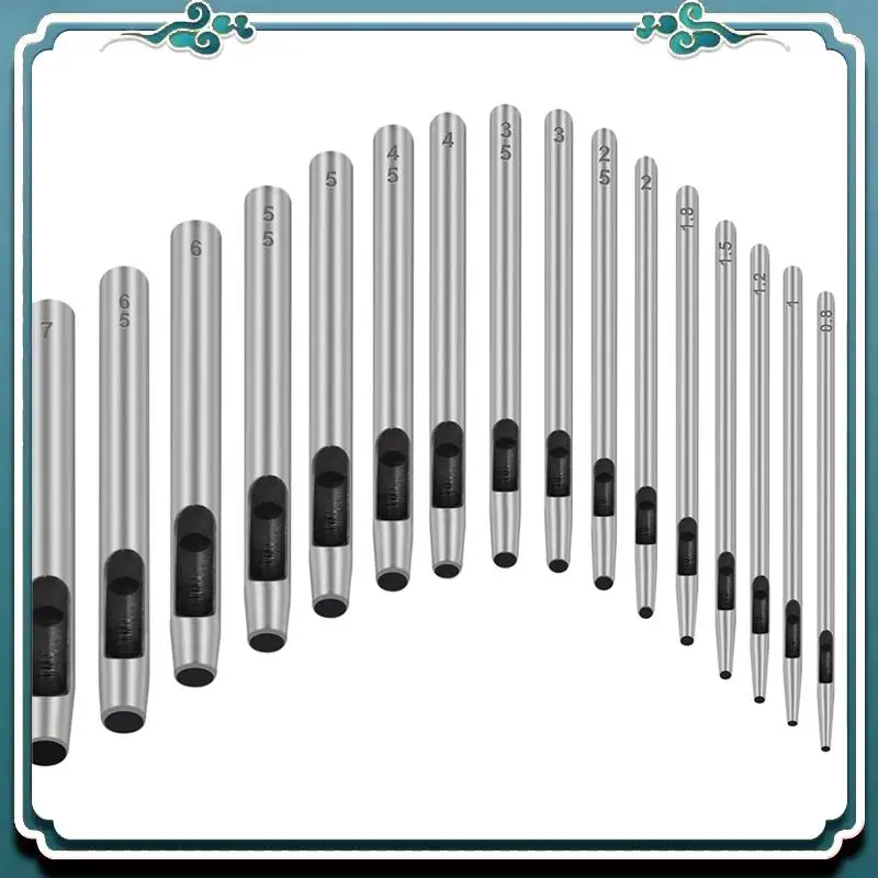 Премиум 17 шт. круглый дырокол для кожи, как показано на рисунке, стальной металлический дырокол для изготовления кожи, набор инструментов для дырокола