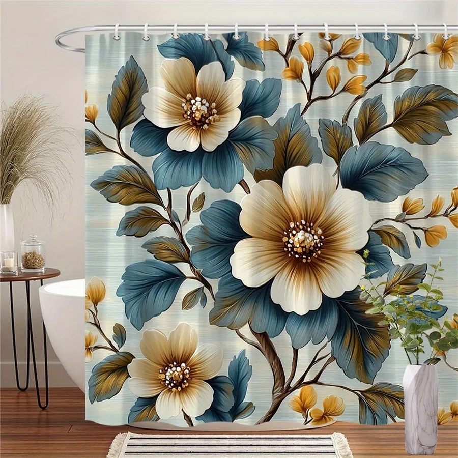 1 шт., занавеска для душа кремового цвета с цветочным узором, полиэфирная ткань, можно стирать в машине, подходит для украшения ванной комнаты