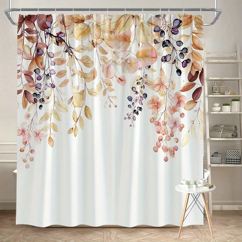 1 шт., занавеска для душа с осенними листьями и ягодами — полиэфирная ткань, можно стирать в машине, подходит для украшения ванной комнаты
