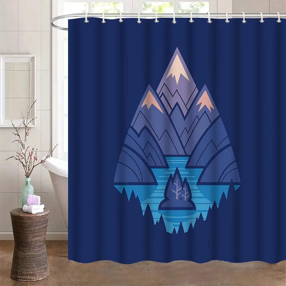 1 шт. занавеска для душа с принтом горного озера и крючками, утолщенная полиэфирная ткань, всесезонный декор для ванной комнаты, можно стирать в машине