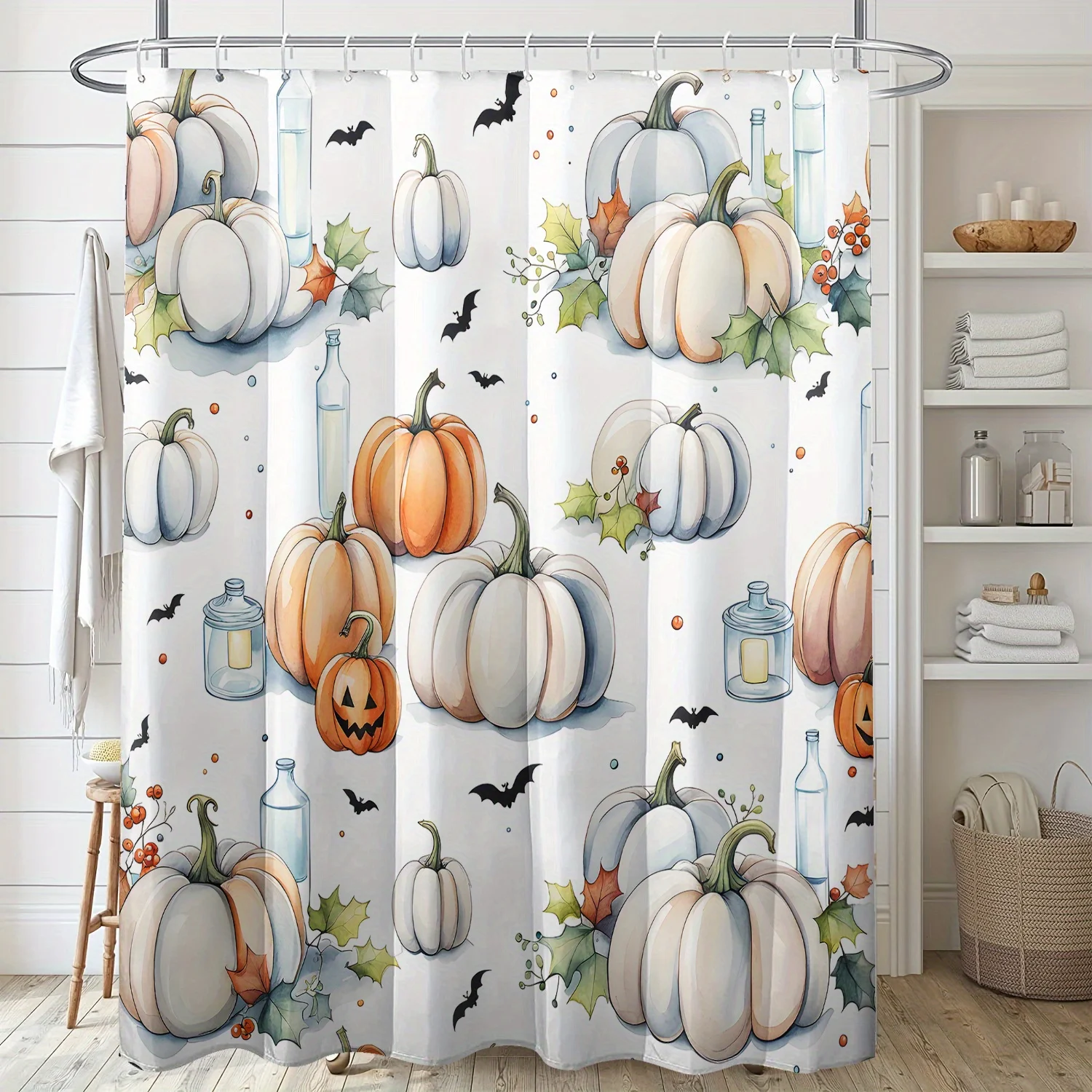 1 шт., занавеска для душа с тыквой и свечами для бутылок, полиэфирная ткань, можно стирать в машине, подходит для украшения ванной комнаты