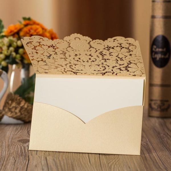 1 шт. золотой красный полый лазерный резак роскошные флоры свадебные приглашения карты элегантные алмазные кружева одолжение свадебные событ