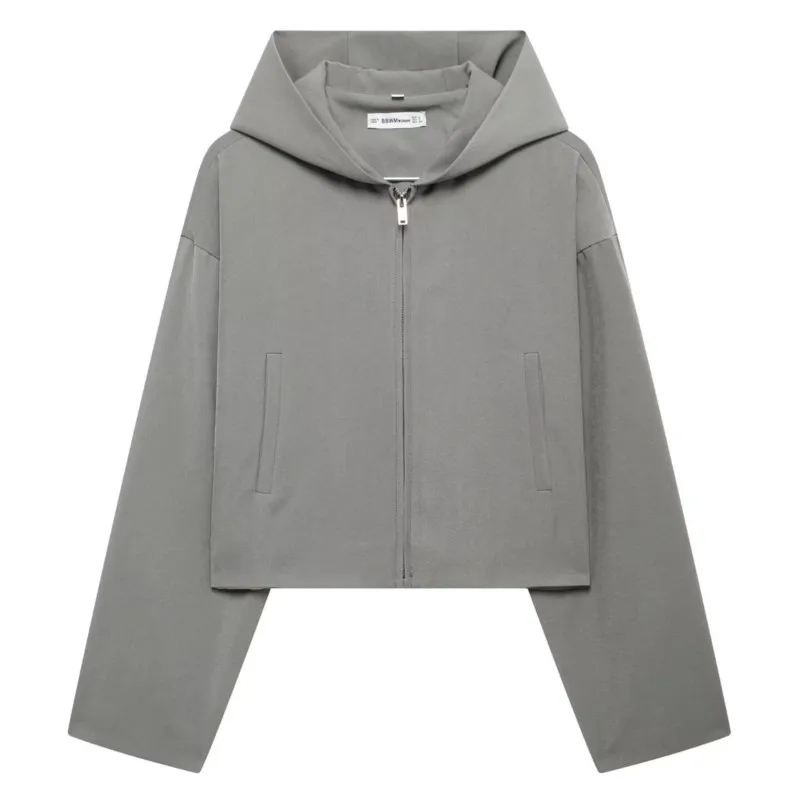 2025 Autumn Womens French-Designed Hooded Solid-Color Short Jacket Zip Stylish Lightweight Outerwear Daily Casual Outfits Tops