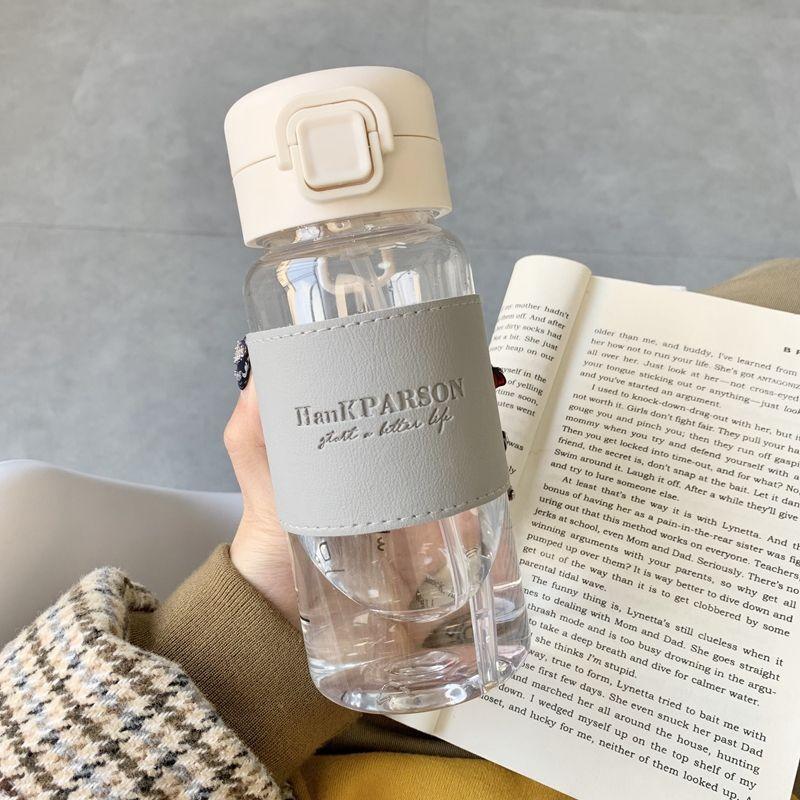 1 шт., креативная бутылка для воды с соломинкой, портативная милая пластиковая бутылка для питья, герметичная посуда для питья, молоко, кофе, чай серый
