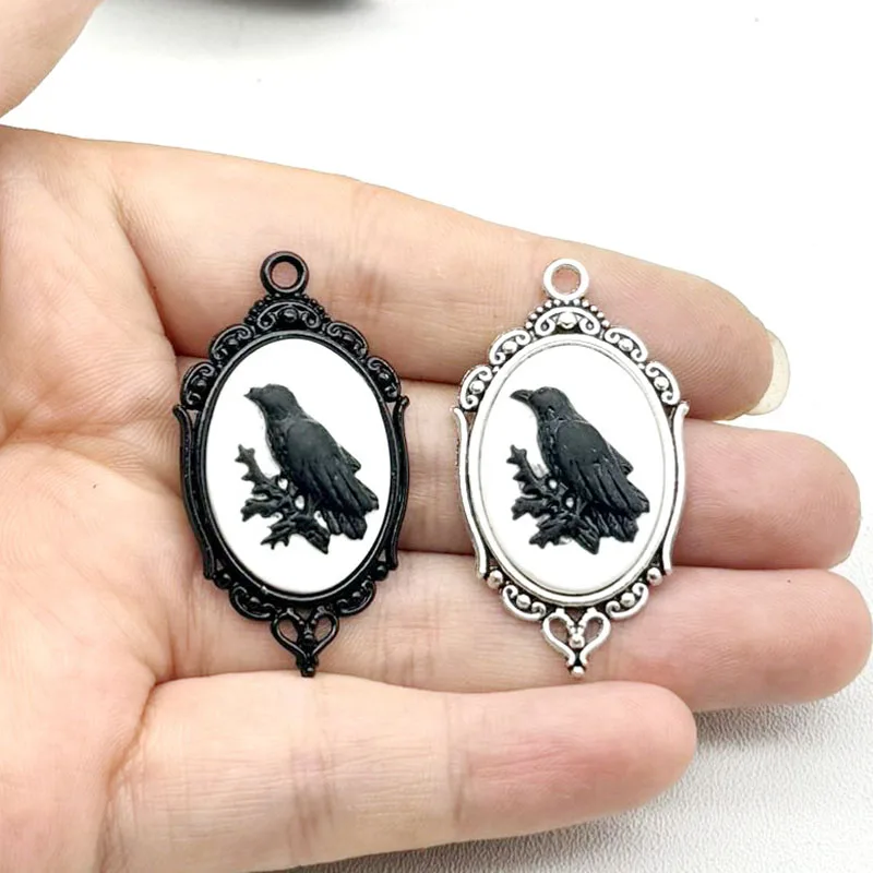 Gothic Black Crow Silver Plated Frame Cameo Pendant Raven Relief Charms for Halloween DIY Jewelry Making Fit Jewelry Accessories