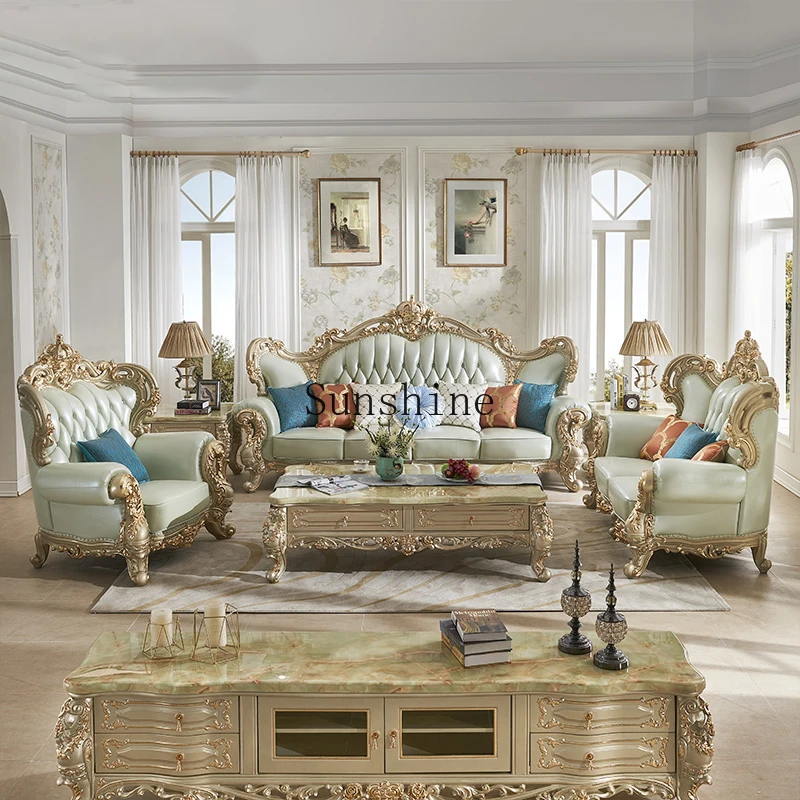 American luxury villa type solid wood carving flower living room luxury combination sofa