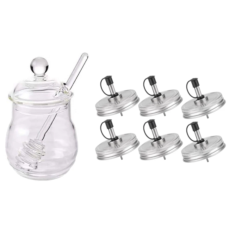 1 шт. медовая банка с крышкой, прозрачный медовый горшок и 6 шт. 70 мм Стандартный горшок, каменная банка с носиком, крышки с пластиковыми крышк...