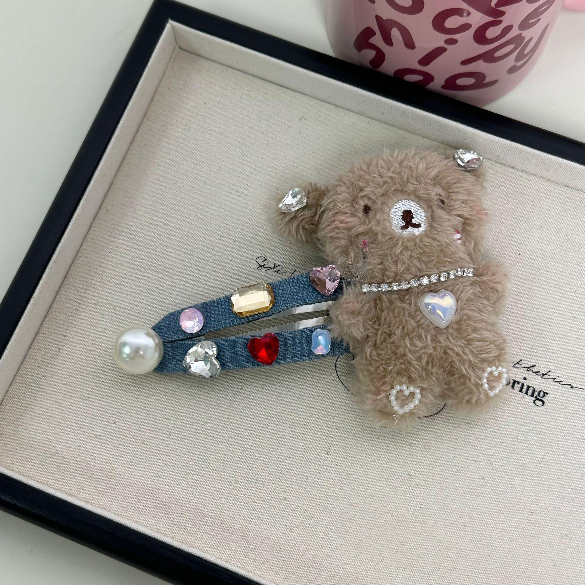 1 шт. милая плюшевая заколка для волос в виде кролика-мишки-ковбоя с разноцветными бриллиантами, сладко-кислая девочка, большая заколка для волос, аксессуар для волос