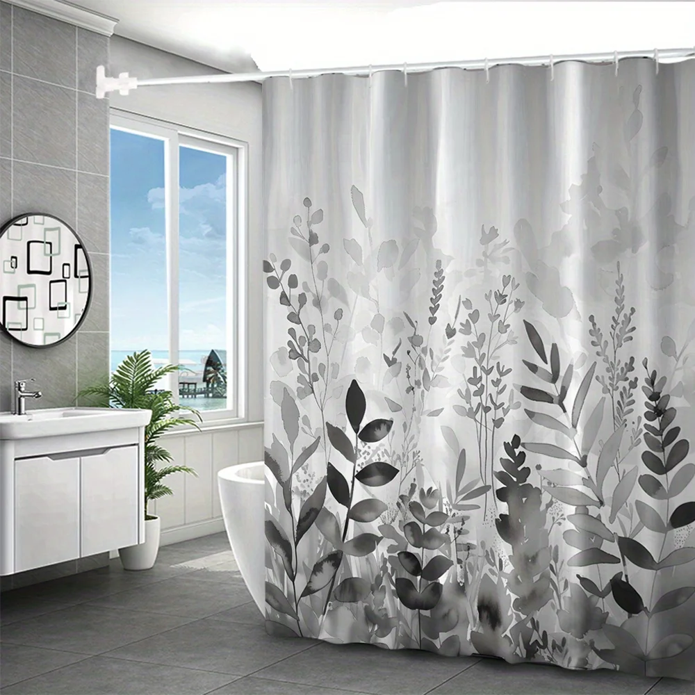 1 шт. минималистичная серая занавеска для душа с цветочным узором, полиэфирная ткань, можно стирать в машине, подходит для украшения ванной комнаты