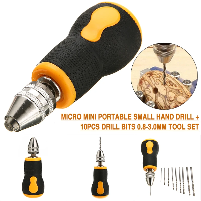 1 шт. мини ручная дрель + 10 шт. 0,8-3,0 мм углеродистая сталь спиральное сверло Набор инструментов профессиональная игрушка модель часы сверление Инструменты для ремонта