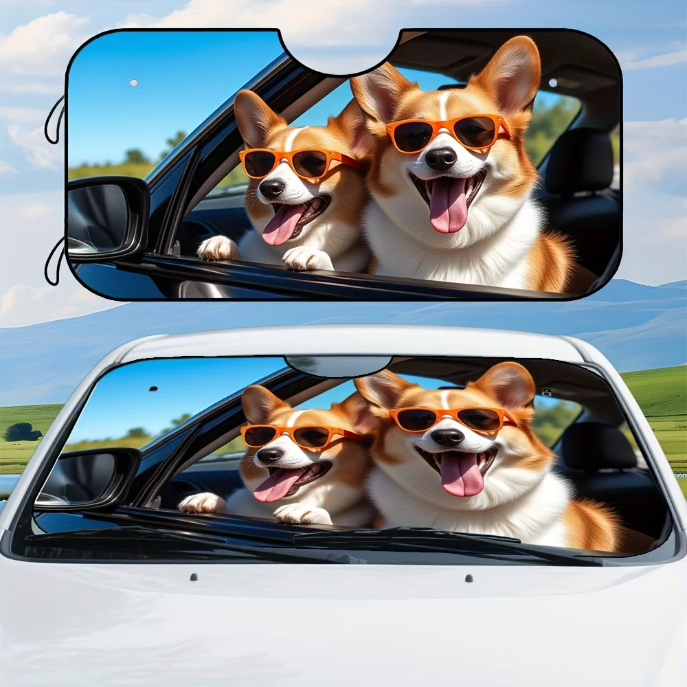 1 шт. модные собаки корги в очках, музыкальная солнцезащитная козырек на лобовое стекло автомобиля — защита от ультрафиолета, прохладная и стильная, идеально подходит для поездок на работу