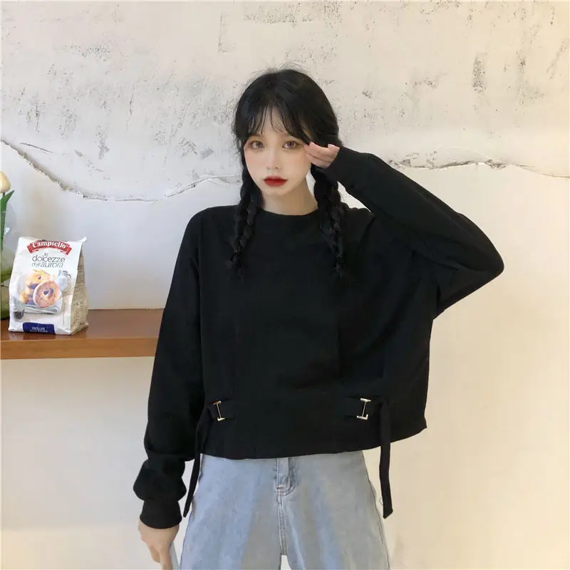 Spring Korean version 2021 new design feeling loose short hoodless popular long sleeve sweater top women's fashion Women's wear
