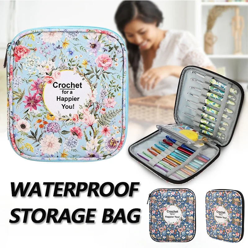 1 шт., набор для ручного вязания с цветочным принтом, крючок на молнии, водонепроницаемая сумка для хранения, сумка для хранения с принтом «сделай сам», набор перемычек, сумка для хранения игл
