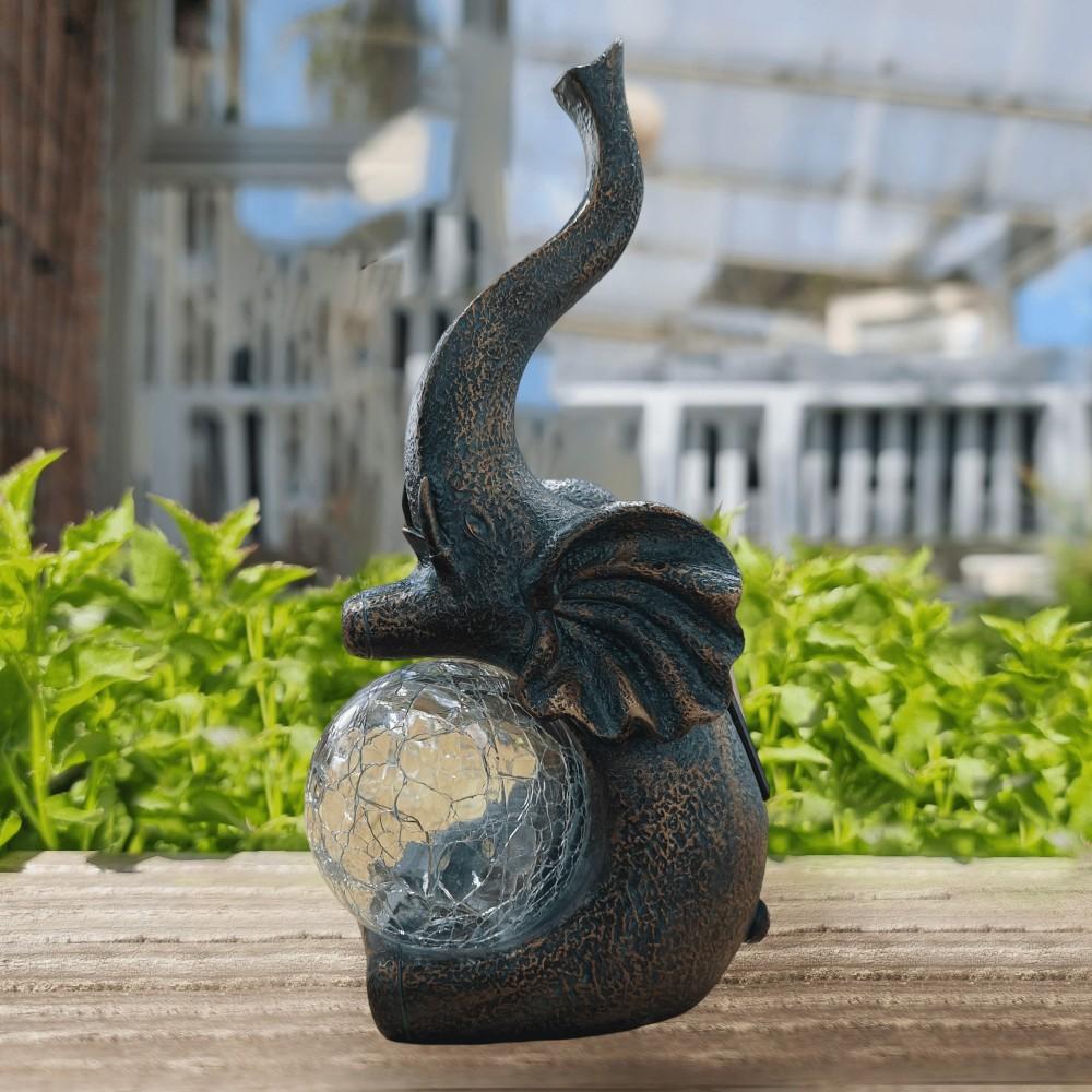 1 шт. наружная солнечная статуя слона, украшение для сада, милая статуя слона со светодиодным битым стеклянным шаром, работающая на солнечной энергии