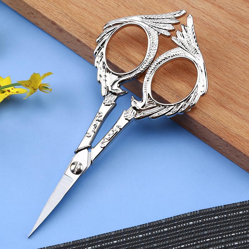 1 шт., ножницы для стрижки бровей из нержавеющей стали, классические красные медные ножницы с гравировкой птичьего пера 12.7cm*5.7cm*2cm серебряный