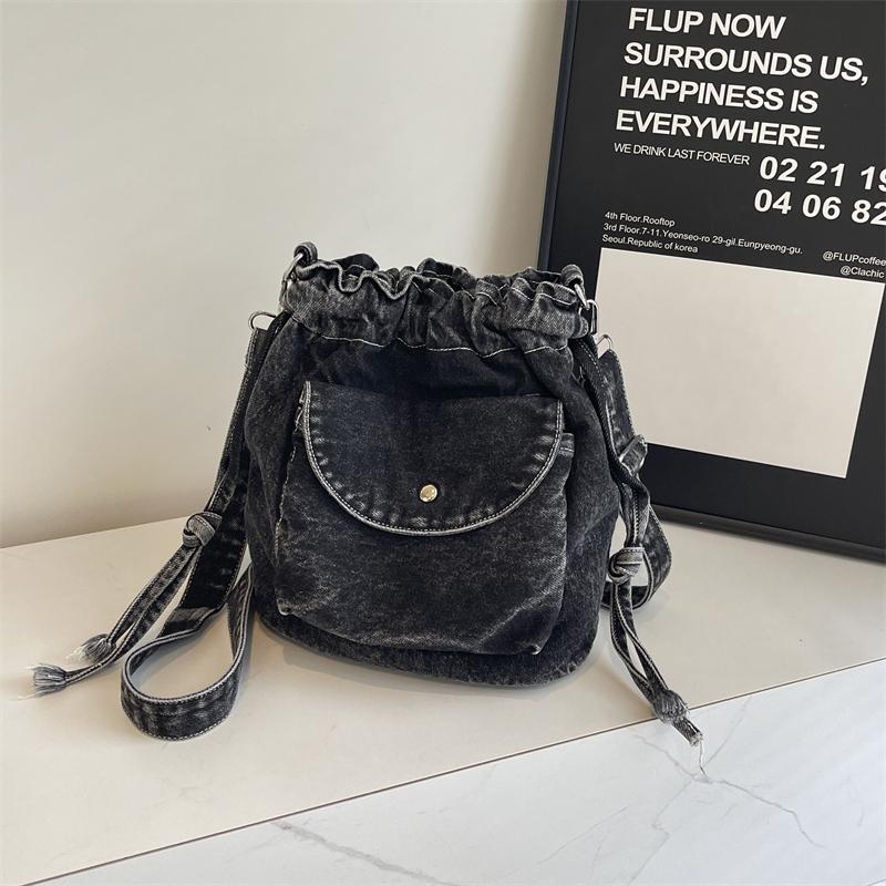 1 шт., однотонная джинсовая сумка большой вместимости, модная сумка-мессенджер с широким плечевым ремнем
