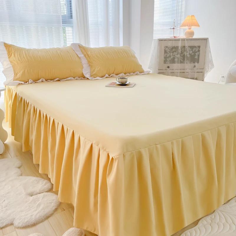 1 шт. однотонная юбка-кровать с кружевом, всесезонное покрывало с оборками Queen/King roupa de cama(Без наволочки) 150x200x45cm 1pc