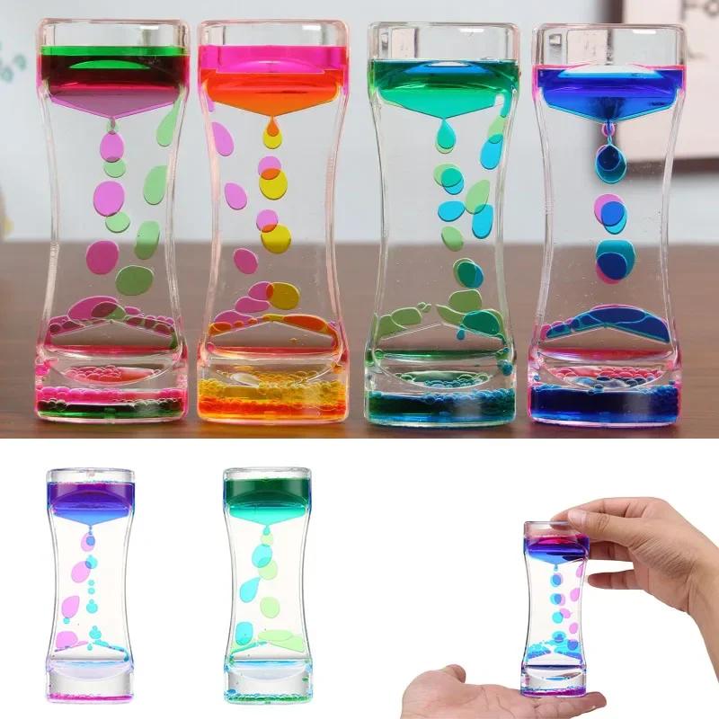 1 шт. пониженного давления двухцветный жидкое масло песочные часы таймер плавающие пузырьки движения таймер настольные украшения сенсорные пузырьки детская игрушка