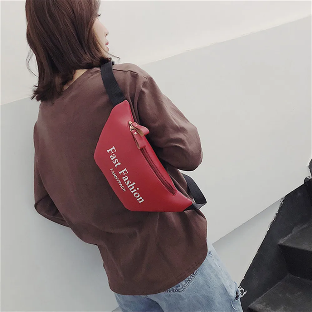 Women's fanny pack Fashion Letter waist bag PU Leather Female Belt Bag Waterproof Chest Bags Waist Packs for Running Biking