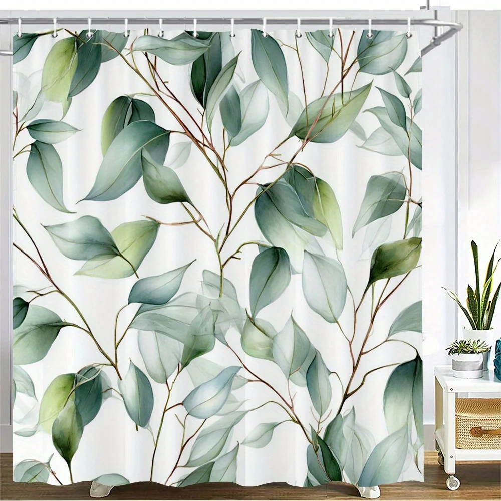 1 шт., пышная занавеска для душа с акварельными листьями и ветвями — полиэфирная ткань, можно стирать в машине, с крючками, для декора ванной комнаты