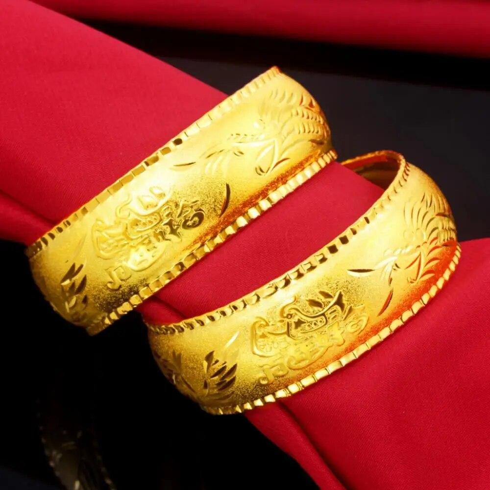 1 шт. свадебные ювелирные изделия из чистого золота 24 К, тонкие тонкие свадебные браслеты с драконом и фениксом 20x60 мм для невест