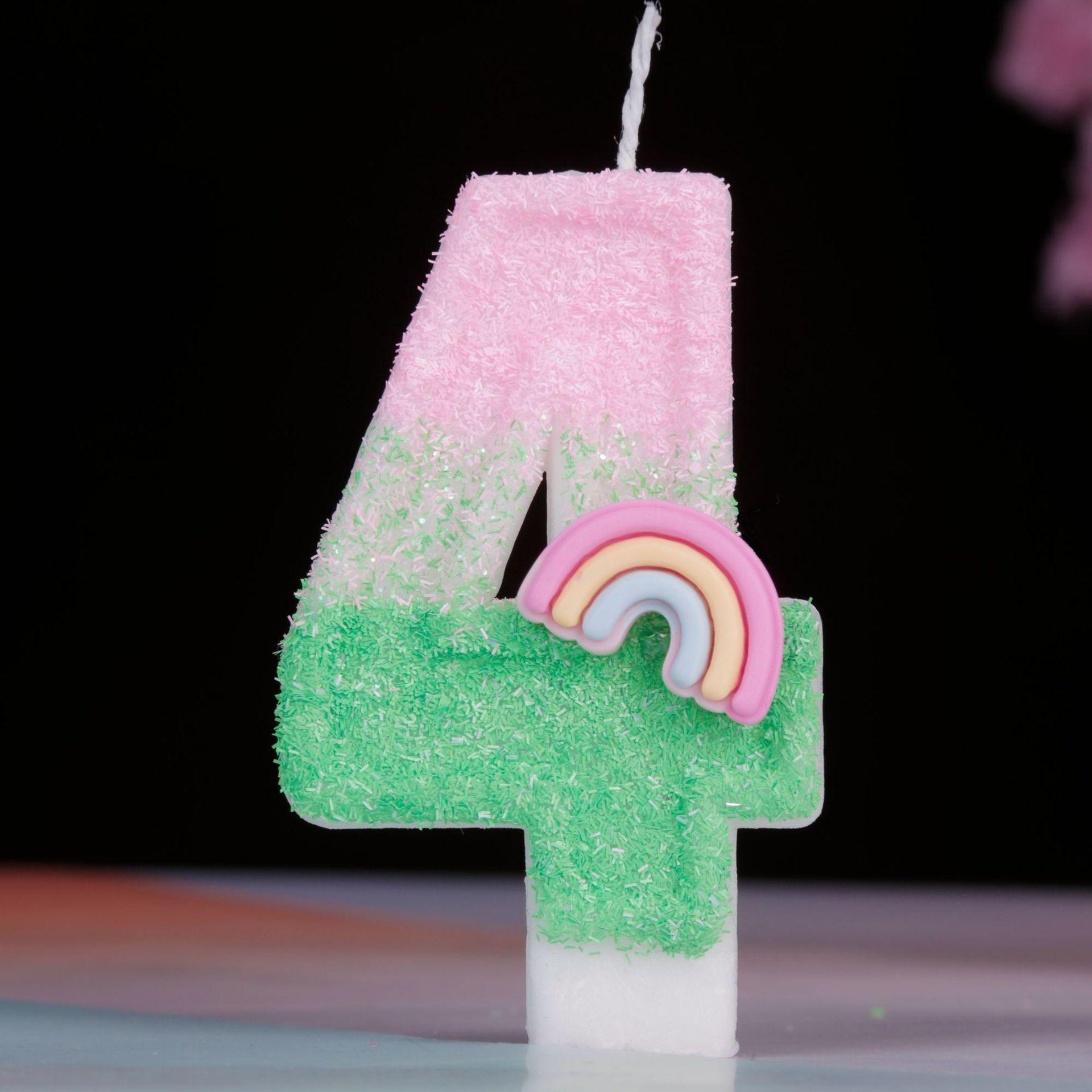 1 шт. свечи в форме цифры 5 на день рождения, свечи в радужной тематике на день рождения для торта, розово-зеленая свеча-цифра для украшения торта с блестками