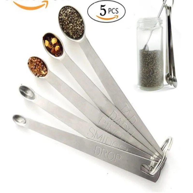 5 Pcs Silver Stainless Steel Measuring Spoons Kitchen Measuring Cup Spoon Set Baking Utensils Set Mini Spoon Kitchen Tools